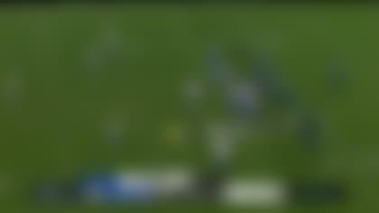 New York Jets running back Breece Hall dissects two Los Angeles Rams defenders after the catch to convert on third-and-11 for 15 yards.