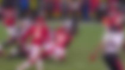 Jake Funk bulldozes through hole for powerful 12-yard pickup