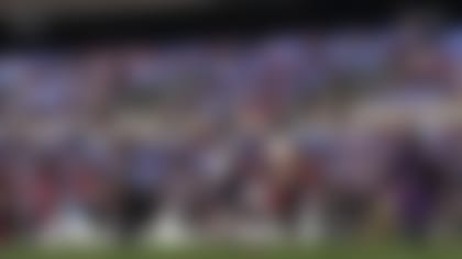 Buffalo Bills quarterback Josh Allen escapes three Pats' defenders for crossbody throw to wide receiver Emmanuel Sanders converting third-and-long.